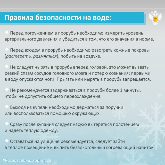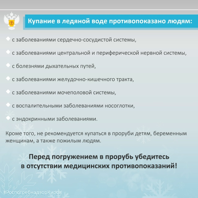 Кроме того, не рекомендуется купаться в проруби детям, беременным женщинам, а также пожилым людям.